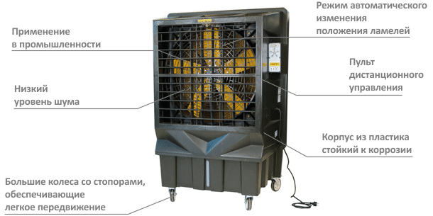 Охлаждение воздуха происходит за счет испарения воды, без применения химических веществ.