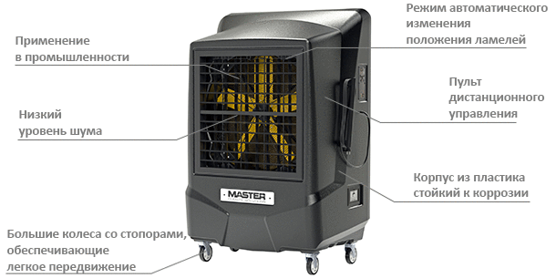 Охлаждение воздуха происходит за счет испарения воды, без применения химических веществ.