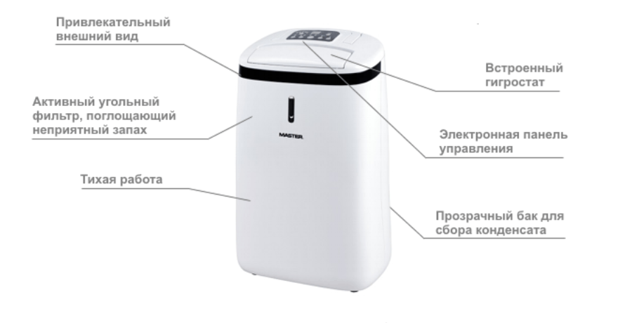 Регулировка устанавливаемого предела влажности (отключения осушителя) от 35 до 95 %.